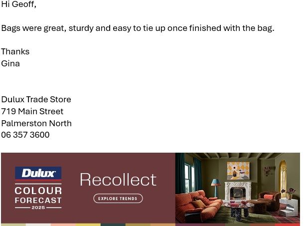 Best Purple Recycled Bag Endorsement from Dulux in Palmerston North
