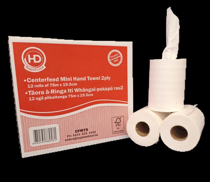 - HD Centerfeed 2ply Mini 75m White x 12 Rolls