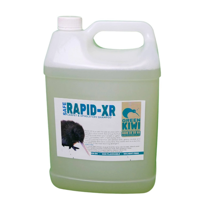 Rapid XR is a safe to use formula with a fresh citrus scent that shampoos & rinses completely to reduce drying time. It's anti-soiling properties easily remove soils, greasy residues & stubborn stains. Can be used in machines, and is great as a laundry pre-spray or detergent too.