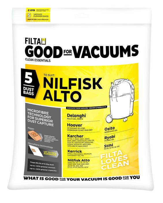 Microfibre vacuum dust bags, for wet and dry vacuums and work shop vacuums. Filta dust bags are made tough, providing high performance dust extraction and dust retention. Compatible with DeWalt, Nilfisk, Karcher and other leading brands.