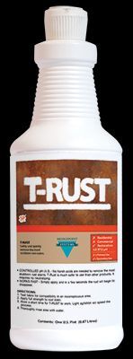 Don't use harsh acids to remove stubborn rust stains, T-Rust is much safer. It requires no neutralizing and you can rinse it with clear water. Simply apply it directly to the rust and in a few seconds you'll see it start to disappear.