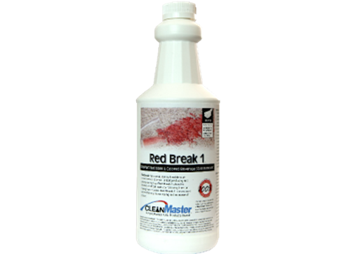 This product is safe and effective on virtually any stain caused by a common household food or beverage spill and is recommended only for use on synthetic carpet fibers. As with any stain removal product, there is always a slight chance of some color loss to the carpet, so always pretest in an inconspicuous area. Red Break 1 is designed for use by trained cleaning professionals. Red Break 1 often works simply by applying solution directly to the stain. For stubborn stains, the application of heat as an accelerator can enhance the treatment process.