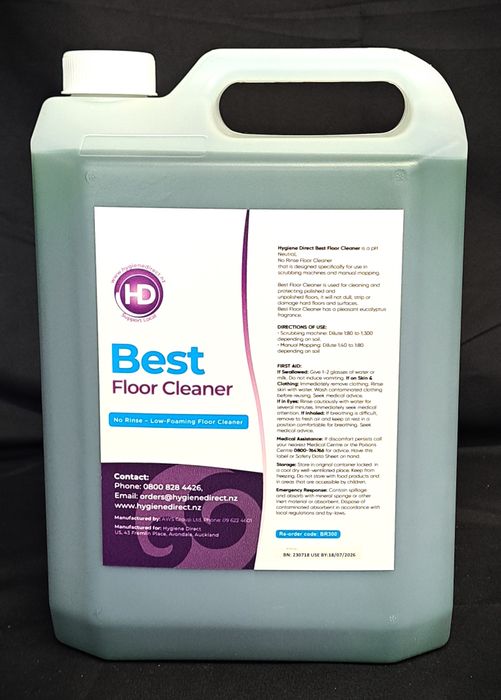 Hygiene Direct Best Floor Cleaner is a PH Neutral No Rinse floor cleaner that is designed specifically for use in scrubbing machines and manual mopping. Best floor is used for cleaning and protecting polished and unpolished floors, it will not dull, strip or damage hard floors and surfaces. Best Floor has a pleasant eucalyptus fragrance