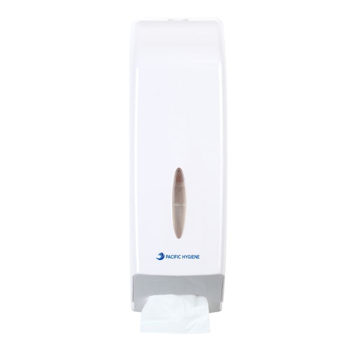 Dispenser • Stylish and contemporary design • Compact dispenser for a neater looking washroom • Robust ABS plastic casing • Secure locking mechanism • Push button for easy access and refilling • Convenient display window • Single sheet dispensing system to ensure superior hygiene