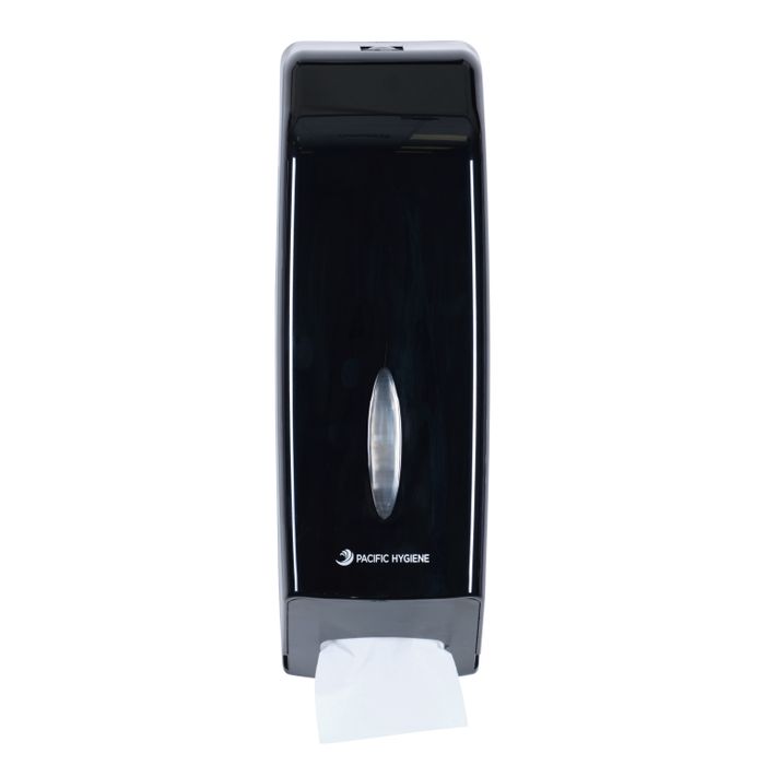 Dispenser • Stylish and contemporary design • Compact dispenser for a neater looking washroom • Robust ABS plastic casing • Secure locking mechanism • Push button for easy access and refilling • Convenient display window • Single sheet dispensing system to ensure superior hygiene