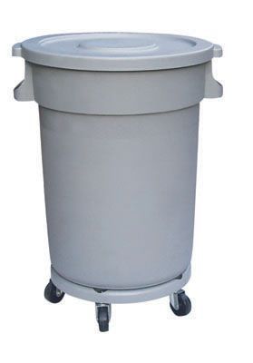 80L Heavy Duty Round Brute Style Bin with Lid comes with detachable dolly