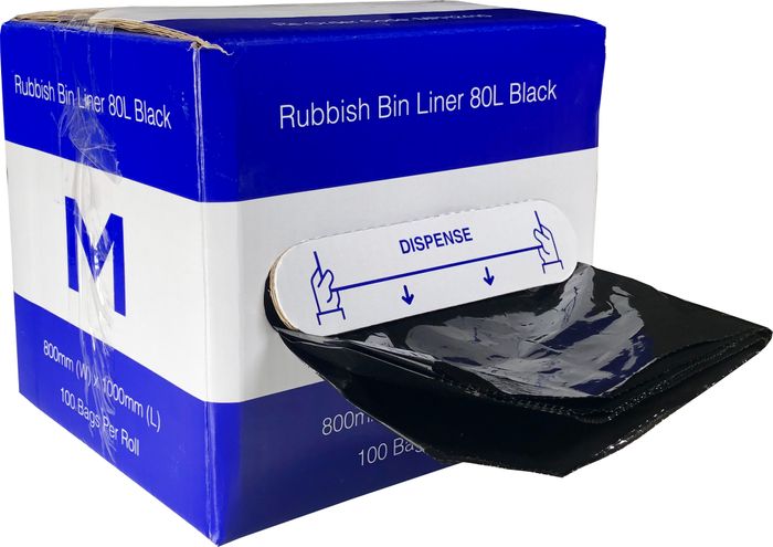 - Dispenser Box Roll Rubbish Bag 80L Black - 100/roll
