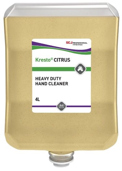 Kresto® Citrus Heavy Duty Hand Cleaner (4 L) is a super-effective industrial hand cleanser formulated to tackle heavily ingrained soils — including oil, grease, carbon black and lubricants — while leaving hands refreshed with a fresh citrus scent. The lotion contains natural cornmeal scrubbers for mechanical cleaning, orange oil to cut through stubborn soils quickly, and skin conditioners such as jojoba and wheat-germ oil to help prevent dryness after repeated use. Ideal for workshops, garages, manufacturing plants and other heavy-duty work environments where fast, deep cleaning is essential.