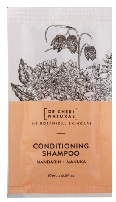 De Cheri Natural conditioning formula shampoo is ideal for those constantly on the go. The best of both worlds in a sachet, this gentle cleansing shampoo has extra moisturising properties of our very own steam distilled essential oils & hydrosols of Mandarin & Manuka to help leave your hair noticeably softer without the need for a separate conditioner.